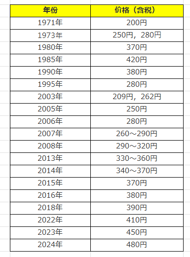 麦当劳在日本于1971年发售,发售以来的价格走势如下。