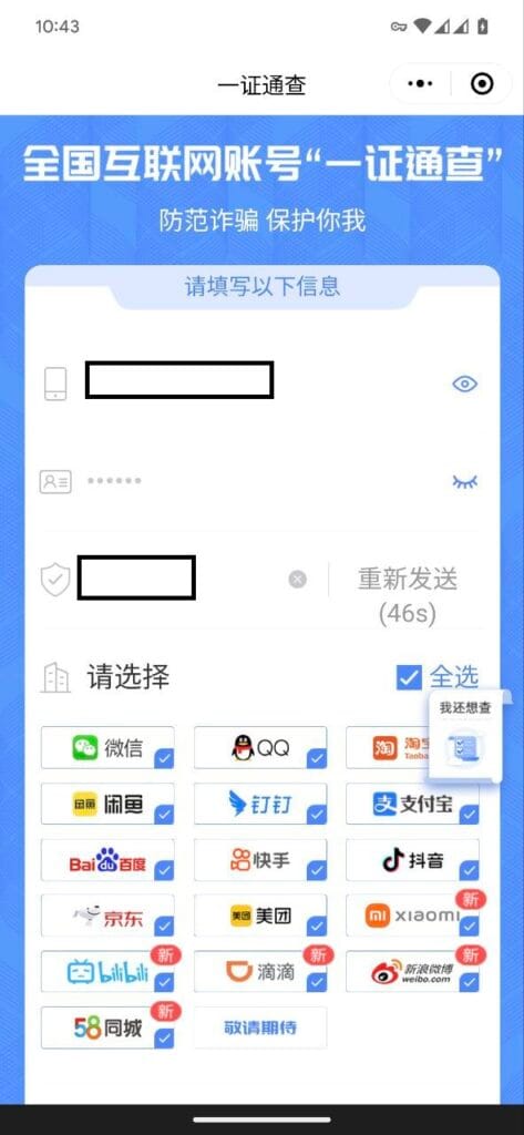 - 记得自己的身份证号(仅用于查询自己名下有几个手机号)