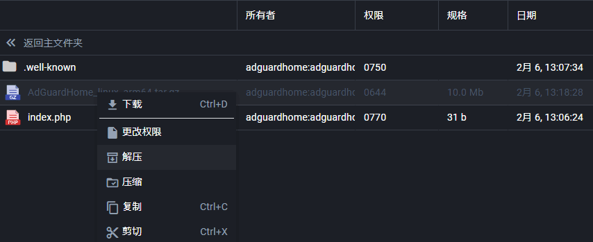 - 把在AdGuardHome官方页面下载的包,放到文件管理器的下述位置,里的链接名文件夹里。使用拖曳即可。