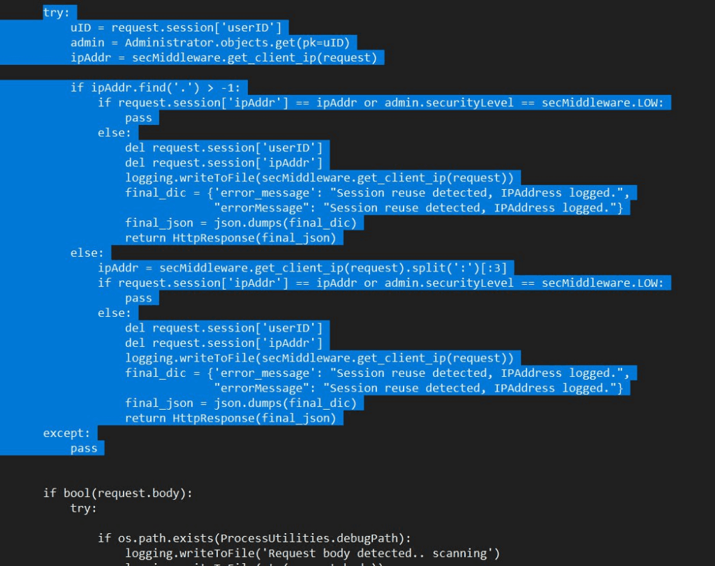 - 编辑文件secMiddleware.py(编辑文件之前记得备份,不然弄错了,面板页面就500了)