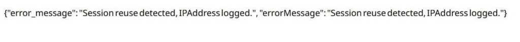 2-{“error_message”: “session reuse detected, ipaddress logged.”, “errormessage”: “session reuse detected, ipaddress logged.”}