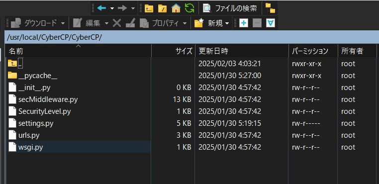 - 使用Winscp,以root权限进入文件夹/usr/local/CyberCP/CyberCP/