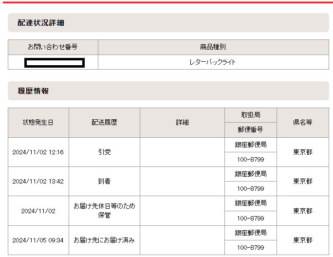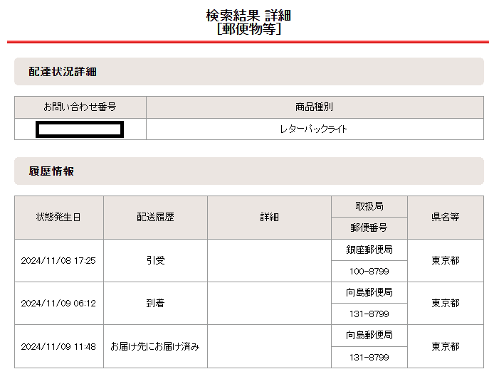 我使用了邮寄方式,11/2邮寄,11/9到手(不在东京的话,邮寄可能来回各加1~2天)