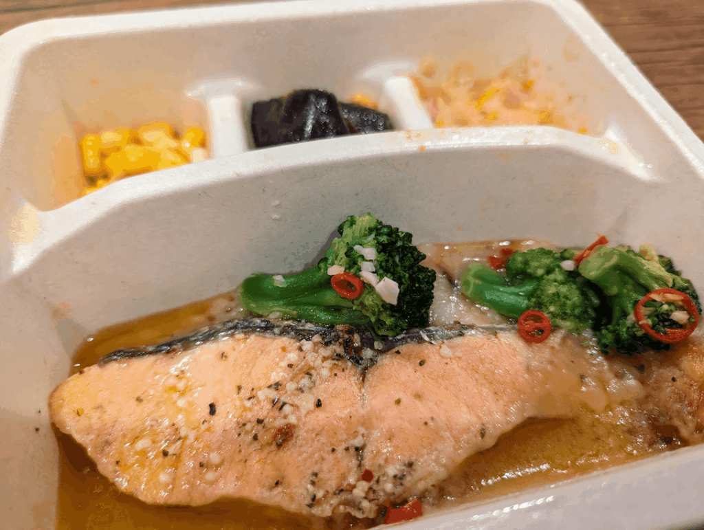 NOSH本身没有主食和汤,需要自己准备。一般我就用自己做好的冷冻米饭和开水冲开的味增汤了。