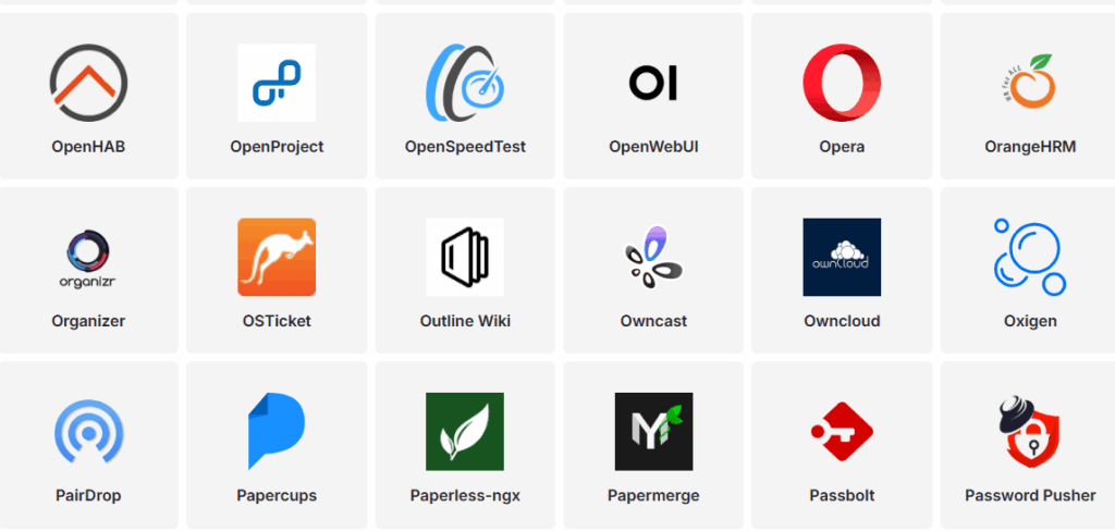 在Easypanel中,ownCloud也是一键部署的对象(下图,中间行,右2)