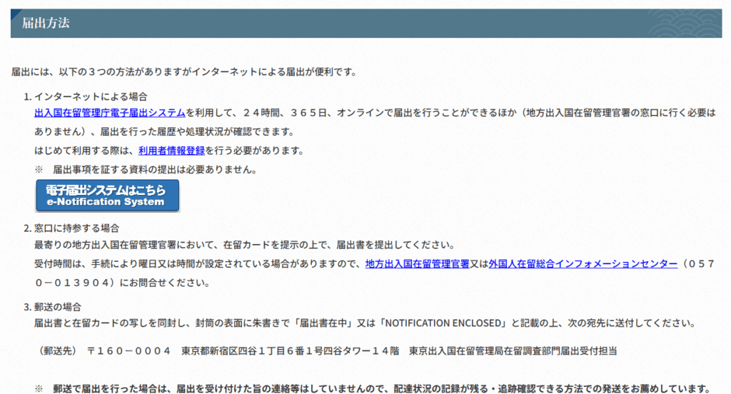 - 直接前往入管申告